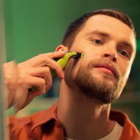Основные характеристики. Назначение: для бороды и усов, для тела. Материал лезвий: нержавеющая сталь. Сухая стрижка: да. Влажная стрижка: да. Способ регулировки длины: смена насадок. Скорость мотора: 12000 об/мин. Количество скоростей: 1. Насадки. Количество насадок: 2. Насадка с регулировкой длины: 1-5 мм. Съемные насадки: 3 мм. Дополнительная комплектация: накладка для защиты чувствительных участков. Дополнительных характеристики. Двусторонние лезвия: да. Влажная очистка: есть. Дополнительная информация: технология OneBlade, индикатор замены лезвия. Питание. Питание: от аккумулятора. Тип аккумулятора: Li-Ion. Время работы от аккумулятора: 60 мин. Время зарядки аккумулятора: 4 ч. Мощность: 1 Вт. Зарядка от USB: да. Корпус. Материал корпуса: пластик. Цвет: чёрный, зелёный. Прорезиненная ручка: да. Водонепроницаемый корпус: да. Комплектация. Защитная крышка: в комплекте. Дополнительная комплектация: кабель USB, дополнительное сменное лезвие. Инструкция.