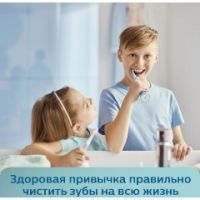 | Комплектация | - 1 щетка Sonicare for Kids с поддержкой Bluetooth - 2 насадки - 8 индивидуальных наклеек - 1 зарядное устройство |