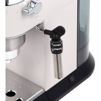 Кофеварка рожкового типа DeLonghi EC685.W выполнена в стильном белом корпусе. Это элегантная и удобная в использовании модель, которая украсит кухню и каждый день будет радовать крепким бодрящим эспрессо и молочными напитками на его основе. За вспенивание молока отвечает ручной капучинатор, в комплект входит насадка-панарелло. Кофеварка работает с молотым кофе, для его отмеривания прилагается ложка с темпером. Он поможет плотно спрессовать таблетку. Управление механическое: установка режима (одинарный, двойной эспрессо или пар) производится при помощи кнопок, удобно расположенных на верхней панели. Есть возможность выбрать температуру напитка (три варианта), задать жесткость воды, а также время, через которое прибор автоматически выключится: 9 минут, 30 минут или 3 часа. Объем резервуара для воды составляет 1,1 л – хватит сразу на несколько завариваний подряд. Подставка под чашки двойная. Это позволяет использовать как миниатюрные чашечки-эспрессо, так и высокие бокалы для латте. Для их подогрева есть специальная панель – напитки дольше останутся горячими. Капли собираются в поддон.