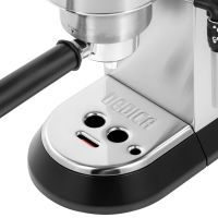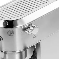 Кофеварка рожкового типа DeLonghi EC685.M выполнена в стильном металлическом корпусе. Это элегантная и удобная в использовании модель, которая украсит кухню и каждый день будет радовать крепким бодрящим эспрессо и молочными напитками на его основе. За вспенивание молока отвечает ручной капучинатор, в комплект входит насадка-панарелло. Кофеварка работает с молотым кофе, для его отмеривания прилагается ложка с темпером. Он поможет плотно спрессовать таблетку. Управление механическое: установка режима (одинарный, двойной эспрессо или пар) производится при помощи кнопок, удобно расположенных на верхней панели. Есть возможность выбрать температуру напитка (три варианта), задать жесткость воды, а также время, через которое прибор автоматически выключится: 9 минут, 30 минут или 3 часа. Объем резервуара для воды составляет 1,1 л – хватит сразу на несколько завариваний подряд. Подставка под чашки двойная. Это позволяет использовать как миниатюрные чашечки-эспрессо, так и высокие бокалы для латте. Для их подогрева есть специальная панель – напитки дольше останутся горячими. Капли собираются в поддон.