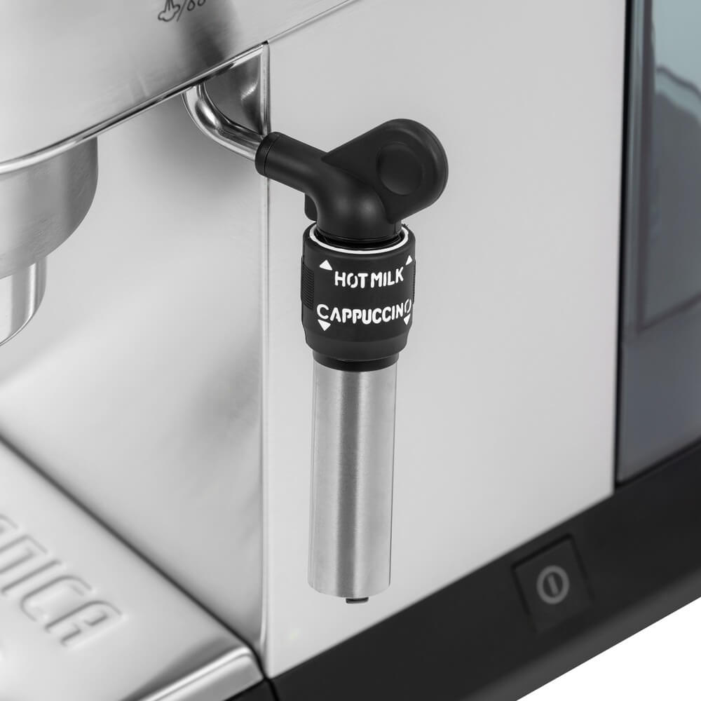 | Особенности | функция быстрого разогрева; не требует подготовки для работы; система "Капучино" с возможносью регулировать интенсивность струи пара; смешивает пар, воздух и молоко для вкусного капучино с густой пышной пенкой; предупреждение о необходимости декальцинации |