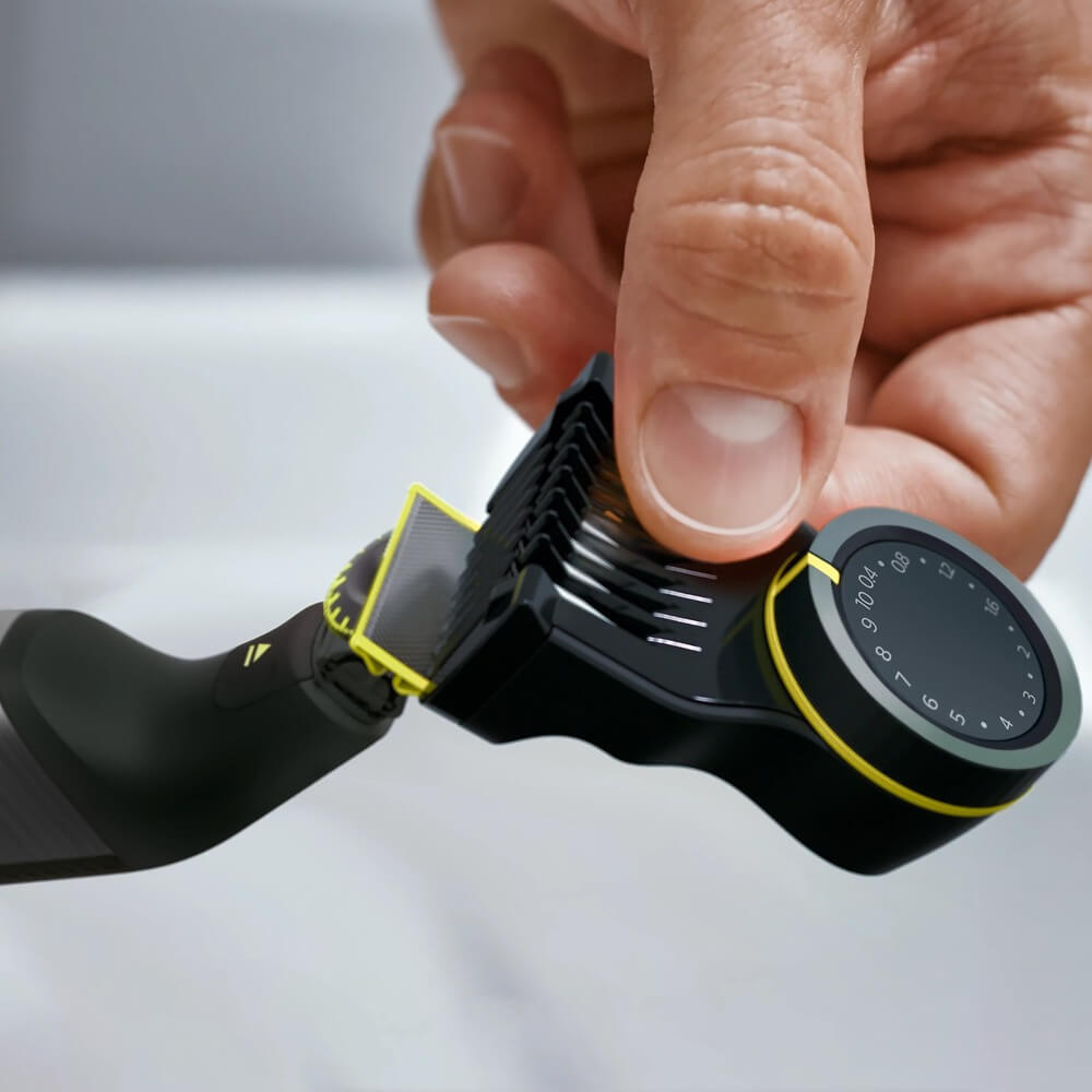 | Комплектация | ручка OneBladу Pro 360°, гребень для подравнивания с 14 установками длины, защитная насадка, насадка-гребень для тела 3 мм, дополнительное сменное лезвие, защитный колпачок, мягкий чехол |
